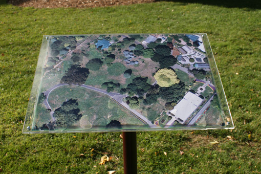 Conifer with Cone Segment 2006, site-specific installation. 'Come with Me... Art, Sound & Words'. Royal Tasmanian Botanical Gardens, Hobart.
